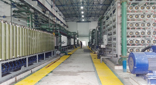 經(jīng)過預(yù)處理(混凝、沉淀、過濾)的原水,在壓力驅(qū)動(dòng)下,利用微濾、超濾去除懸浮物、 膠體、病毒等雜質(zhì),利用反滲透預(yù)脫鹽,利用電除鹽或離子交換深度除鹽,達(dá)到各行業(yè)所需高品質(zhì)除鹽水的水質(zhì)要求。采用自主專利技術(shù),工藝可靠, 產(chǎn)水水質(zhì)好,自動(dòng)化程度高,運(yùn)行維護(hù)簡(jiǎn)便等。